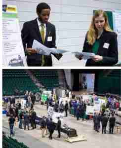 “Apollo” Valves engineers meet with the student design team during the Senior Design Expo on May 6 at UNC Charlotte. The team is designing and building a new backflow test stand.