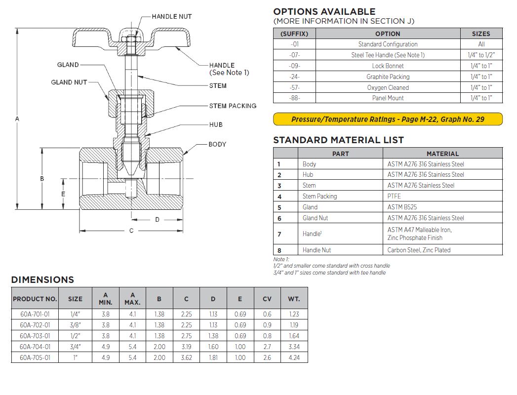 • Fully threaded bonnet to accommodate optional panel mounting nut